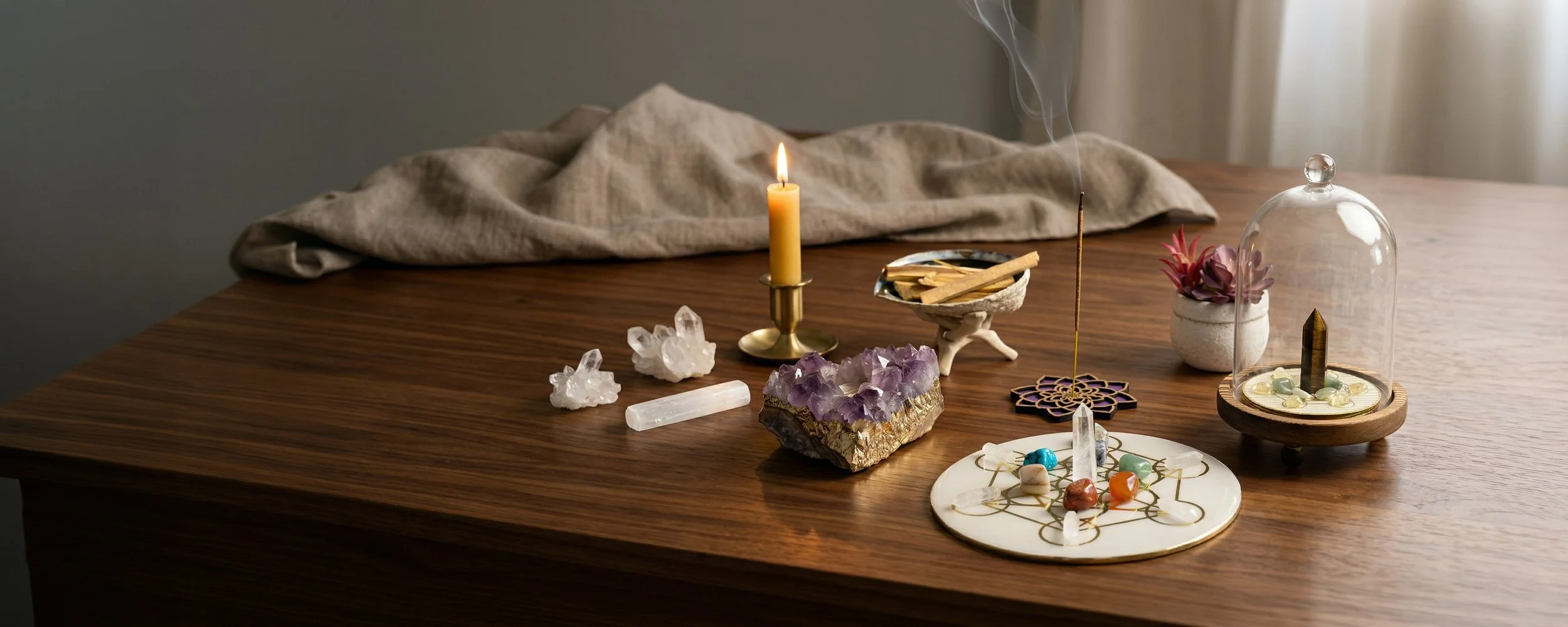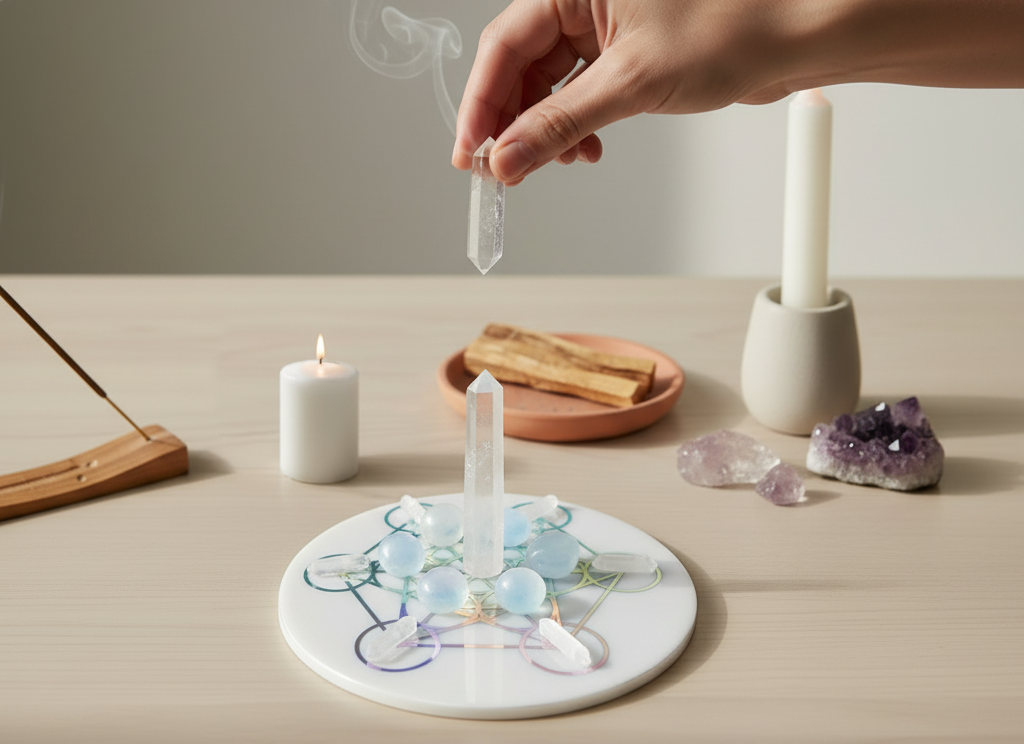 Setting up your crystal grid is a simple, meaningful ritual that helps you focus your intention and direct energy with clarity. Each step invites you to slow down, breathe, and connect with your purpose.
